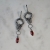 Wyraziste kolczyki wykonane ręcznie z oksydowanego i polerowanego srebra prób 999 i 930, które zjawiskowo kontrastuje z głęboką czerwienią granatów. Misterne srebrne sploty, unikatowa forma i bezpieczne srebrne zapięcia.
